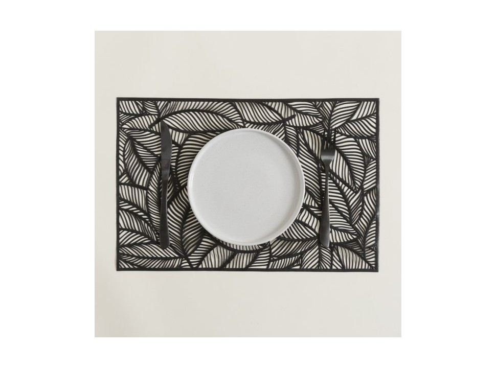 Individual De Pvc Negro Rect Leaves 45X30 Cm