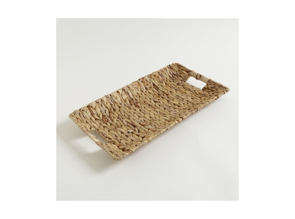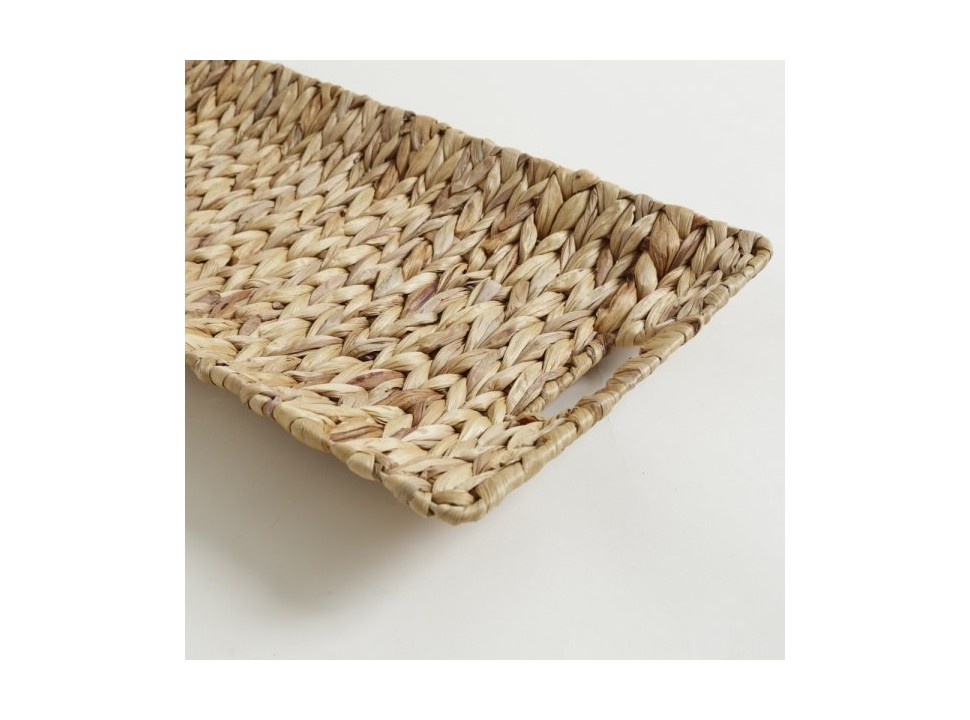 Bandeja rectangular con manija realizada en fibra natural de excelente calidad y terminación. Diseño con efecto trenzado en color natural. Ofrece gran resistencia y durabilidad.