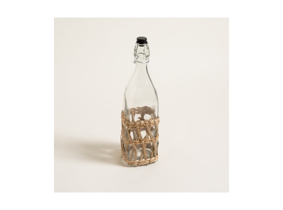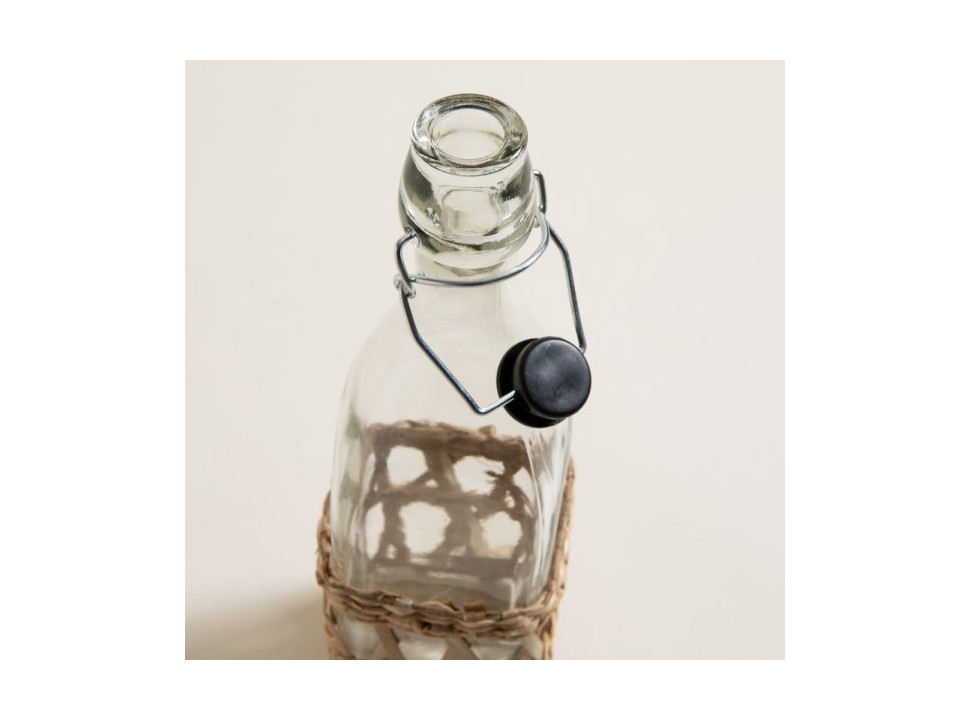 Botella De Vidrio C/ Tapa De Plastico Hermetica Y Malla De Mimbre 1000 Ml