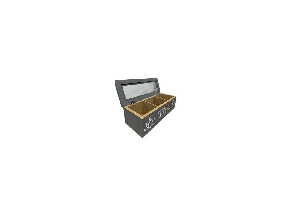 Organiza tu colección de tés con esta elegante caja de 3 divisiones. Con un diseño práctico y moderno, es perfecta para mantener tus bolsitas de té siempre al alcance, con estilo. ¡Un complemento ideal para tu cocina!