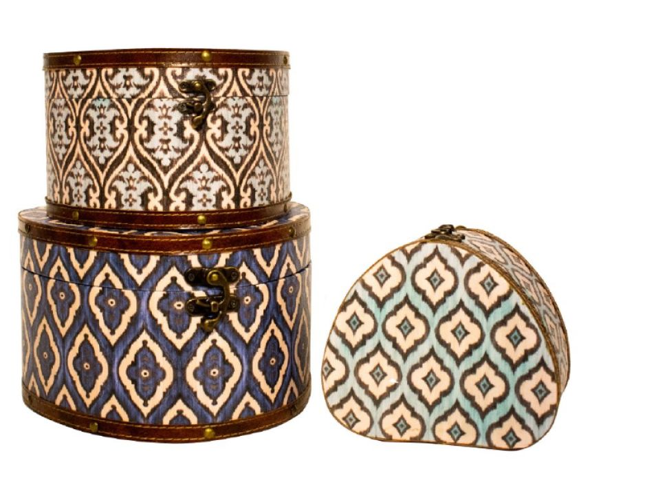 Forrado en tela estampada y herrajes de cuero sintetico. Consultar modelos en stock.