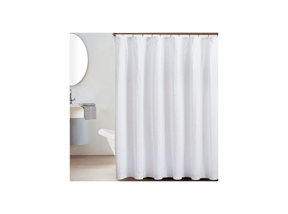 Dale a tu baño un toque sofisticado y texturizado con esta cortina de ducha blanca en relieve con diseño de espigas. Su acabado elegante aporta estilo y calidez, mientras que el material resistente al agua mantiene tu baño seco y protegido.