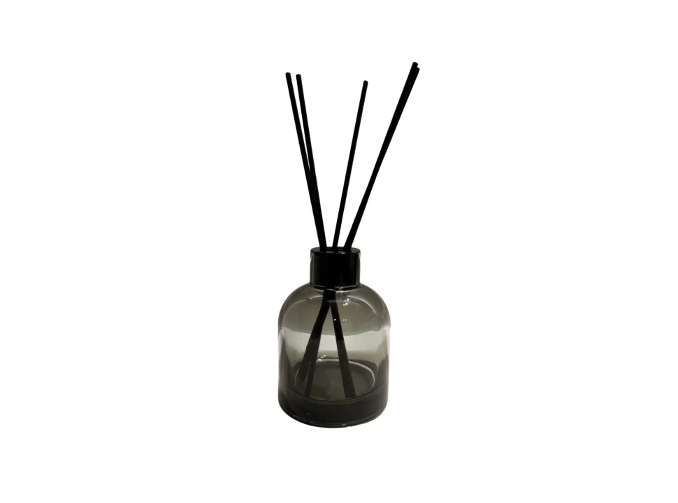 Este difusor decorativo está hecho de cristal negro, con un diseño elegante y moderno que se adapta perfectamente a baños, livings, dormitorios o espacios de trabajo. Incluye varillas negras, lo que refuerza su estética minimalista y sobria.