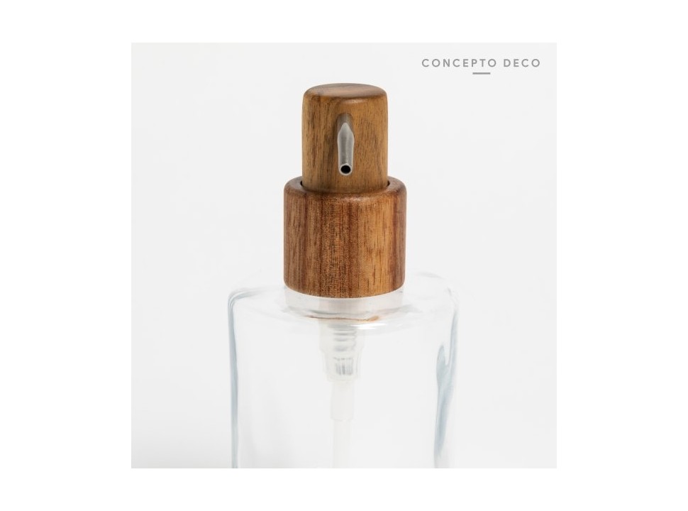 El recipiente de vidrio transparente te permite ver fácilmente el nivel de jabón, lo que facilita su recarga. El pico de madera agrega un toque de calidez y estilo, además de permitir un dispensado preciso y sin desperdicios.