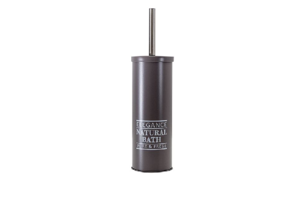 Escobilla de baño en material metal. Se compone de una base alta, una escobilla y por dentro un recipiente para facilitar su limpieza.