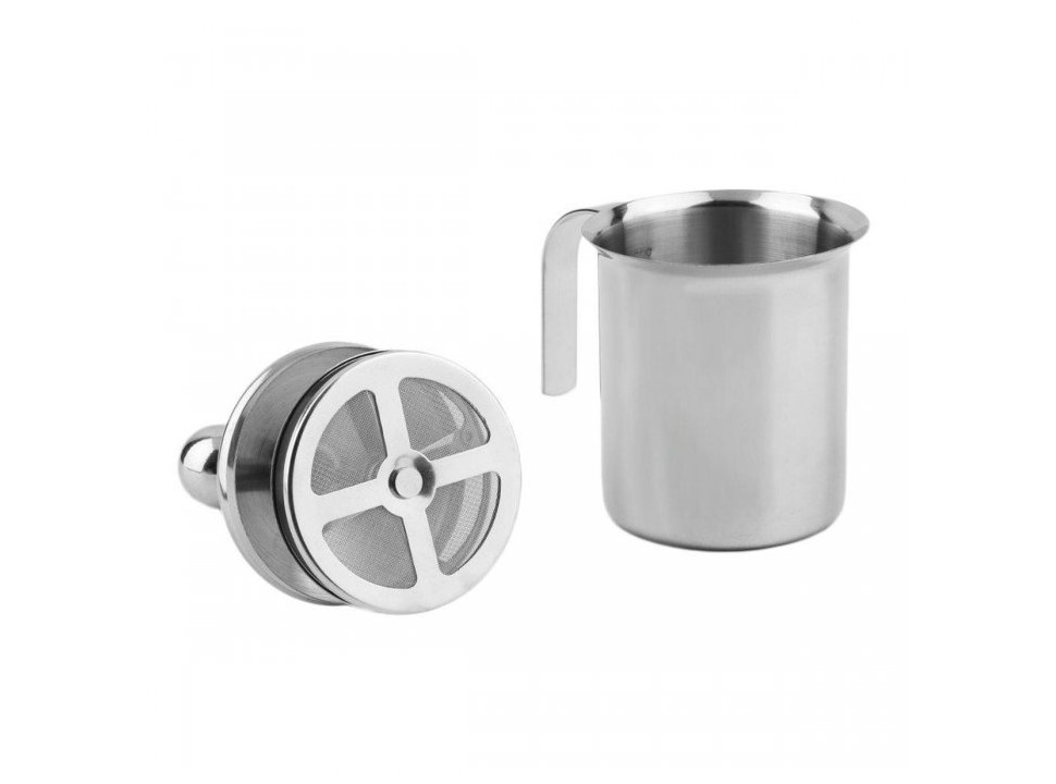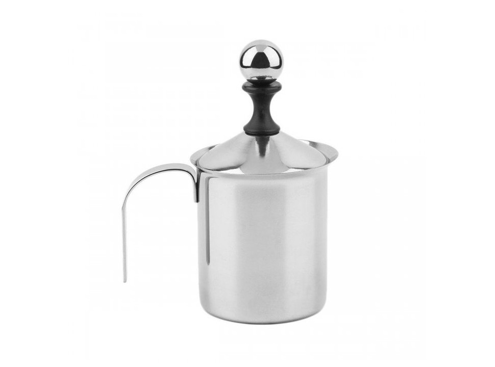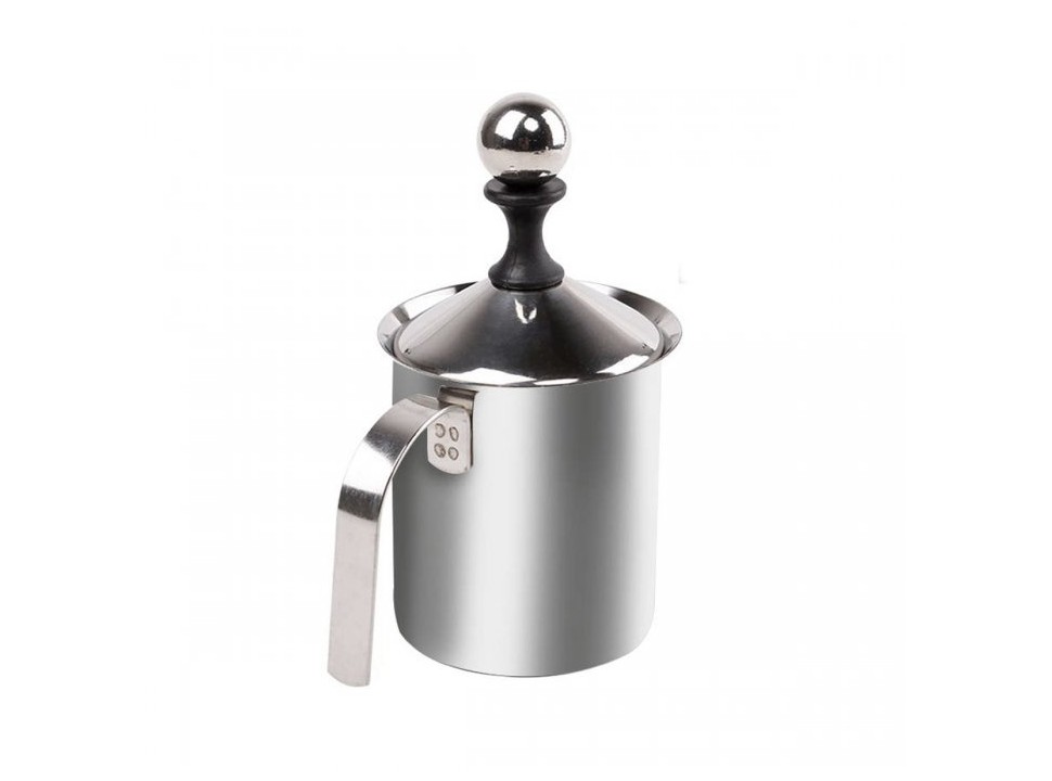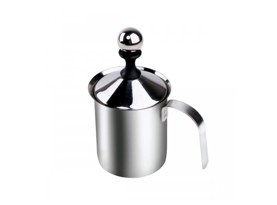 Tomar un café con leche batida a punto ahora es muy fácil con este práctico espumador de leche. Realizado íntegramente en acero inoxidable y nylon de alta densidad. Calienta leche en el mismo recipiente sin dejar hervir, retírala del fuego, inserta la tapa batidora, agítala hasta que la espuma quede a tu gusto y listo!