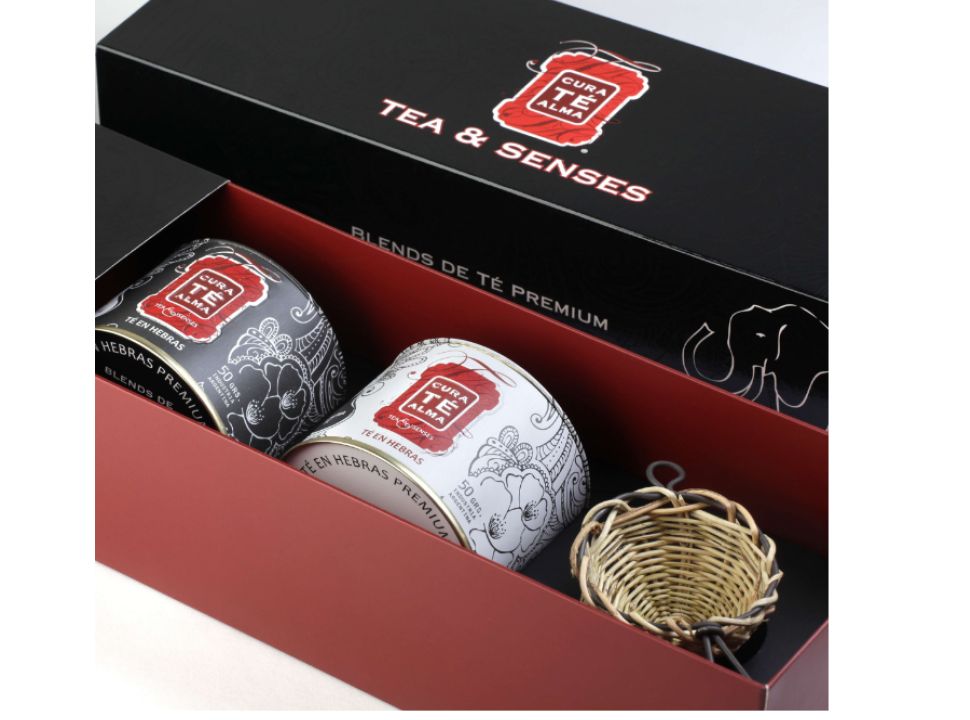 Con dos blends de te de 50 gr cada uno y un colador de te.