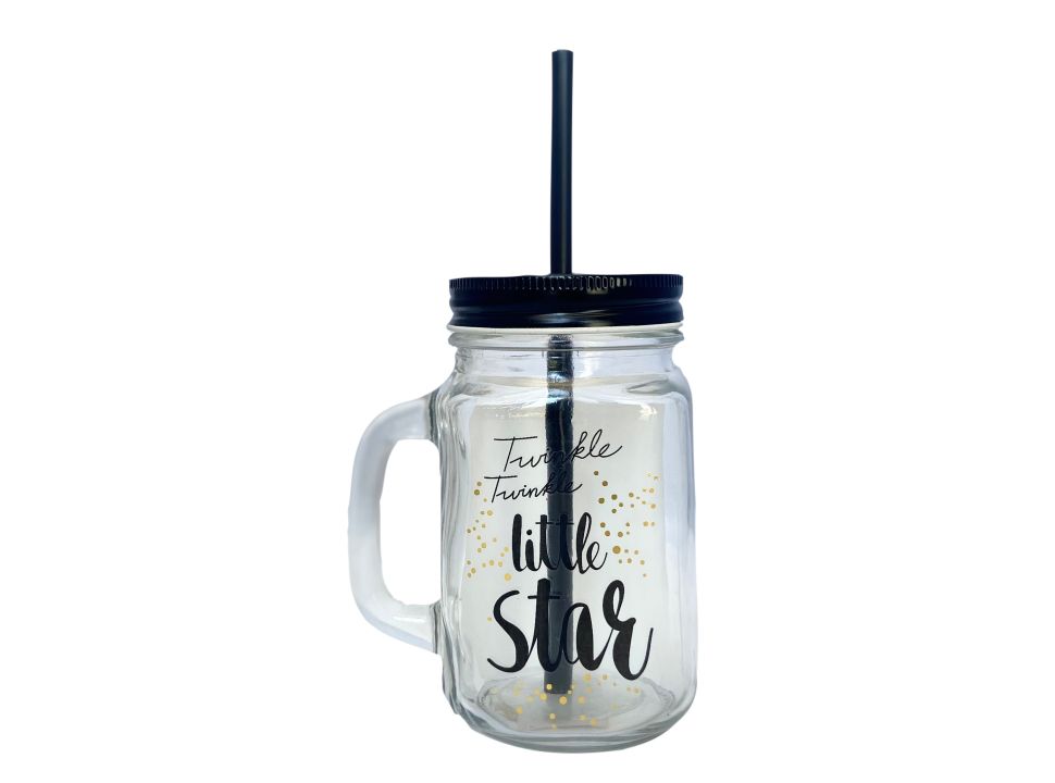 Frasco De Vidrio C/ Sorbete Y Tapa Negra Little Style 13X7 Cm