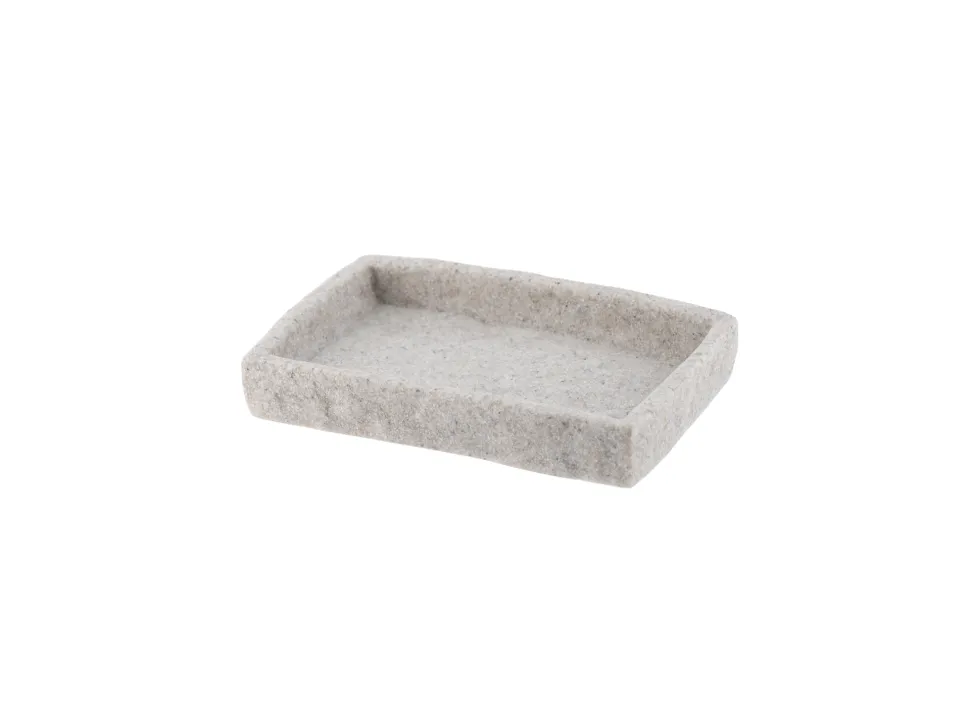 La jabonera Stone está fabricada en resina con acabado que imita piedra, ofreciendo resistencia, estilo y fácil mantenimiento. Su diseño rectangular y líneas irregulares aportan un aspecto artesanal y contemporáneo, ideal para baños modernos o de inspiración natural.