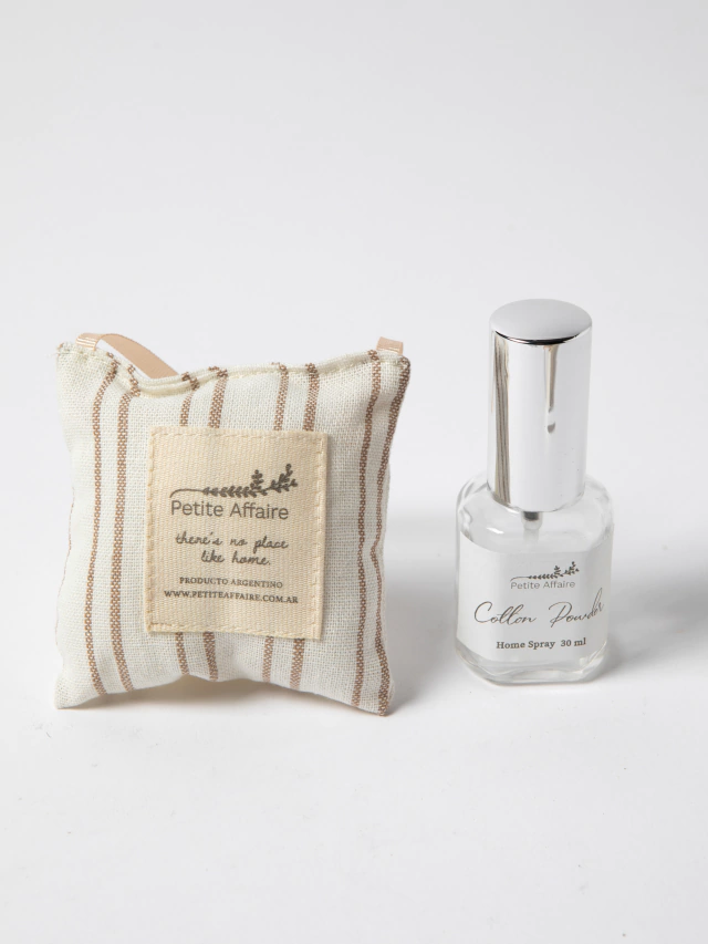 Este kit incluye una delicada almohadilla textil con aroma y un práctico home spray de 30 ml, ideal para ambientar tu espacio con fragancias suaves y relajantes. Con dos opciones de aromas, Lavanda y Cotton Powder, crearás una atmósfera acogedora y refrescante en cualquier habitación.