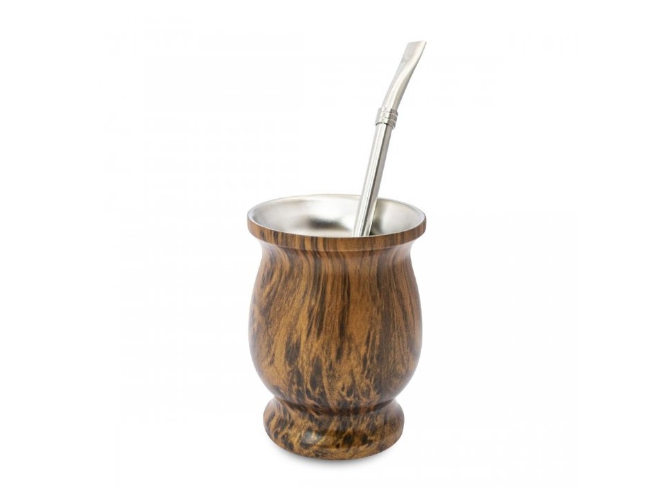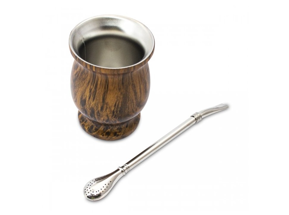 Diseño elegante y de calidad: nuestro mate de acero inoxidable con bombilla tiene un aspecto simil madera, suave y delicado al tacto. Ideal para el uso diario.