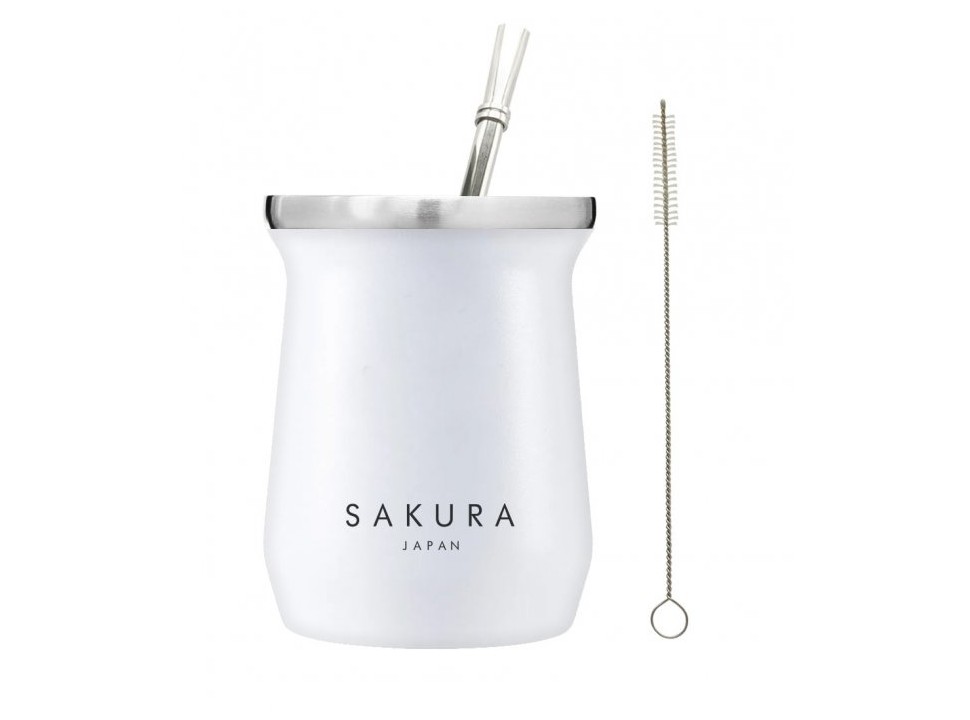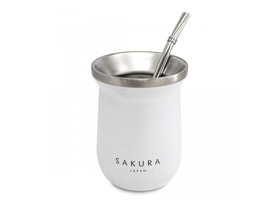 Nuestro mate sakura realizado en acero inoxidable, garantiza un máximo rendimiento. Mantiene 30 minutos el agua caliente y 3 horas el agua fría gracias a su aislación de doble pared. Práctico e higiénico, tan solo poner la bombilla, llenar 3/4 con tu yerma mate preferida, incorporar el agua y listo!, sin transferencias de sabores ni aromas, además no requiere curado. Incluye bombilla y cepillo. Capacidad: 236 ml.