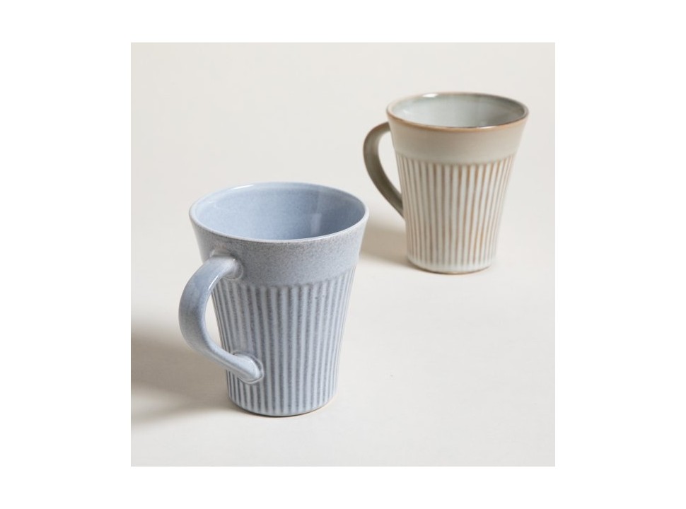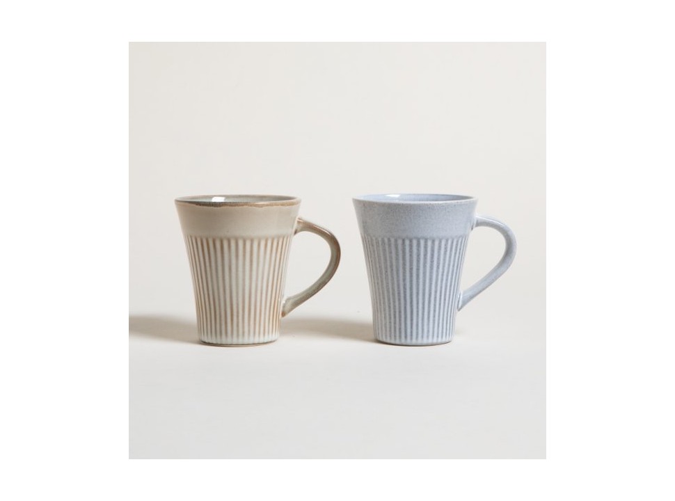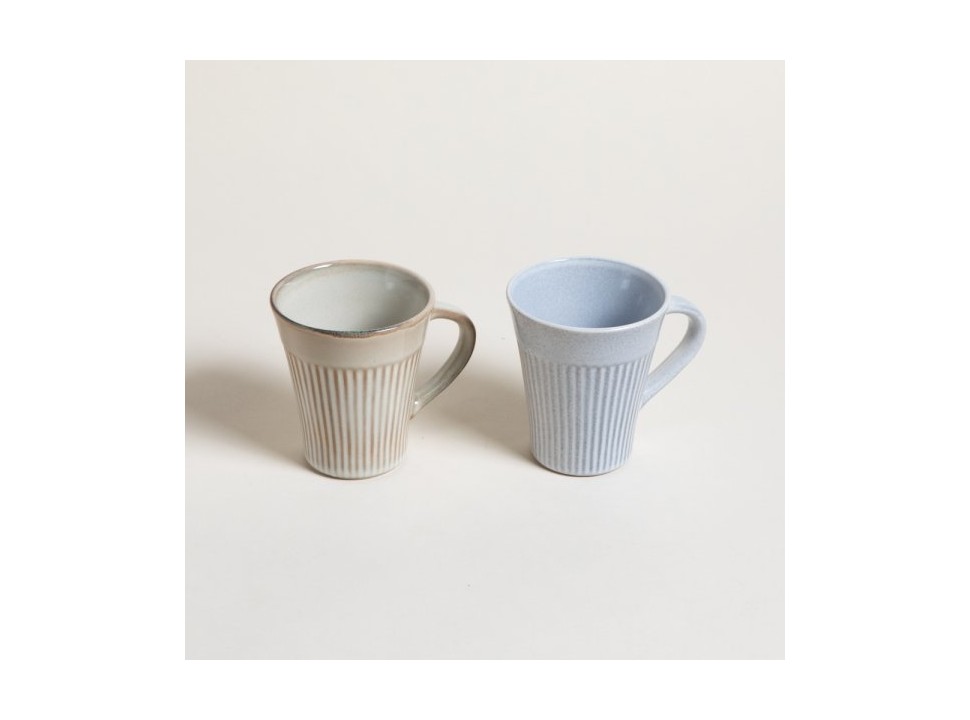 Mug con asa fabricado en cerámica de excelente calidad. Diseño cónico a rayas con textura, ideal para sumarle nuestras cucharitas de diseño. Viene en colores surtidos
