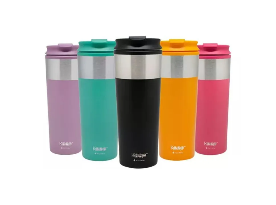 Mug clásico de doble pared de plástico libre de BPA, perfecto para líquidos fríos y calientes.