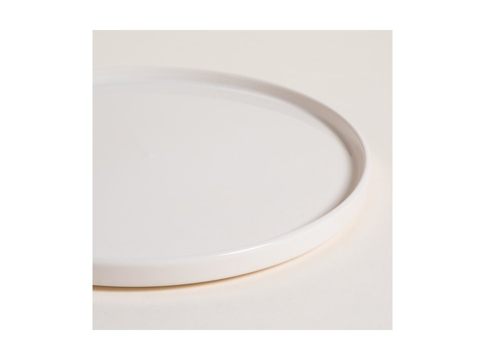 Vajilla realizada en cerámica de líneas simples que se adapta a un estilo de mesa clásica y casual.