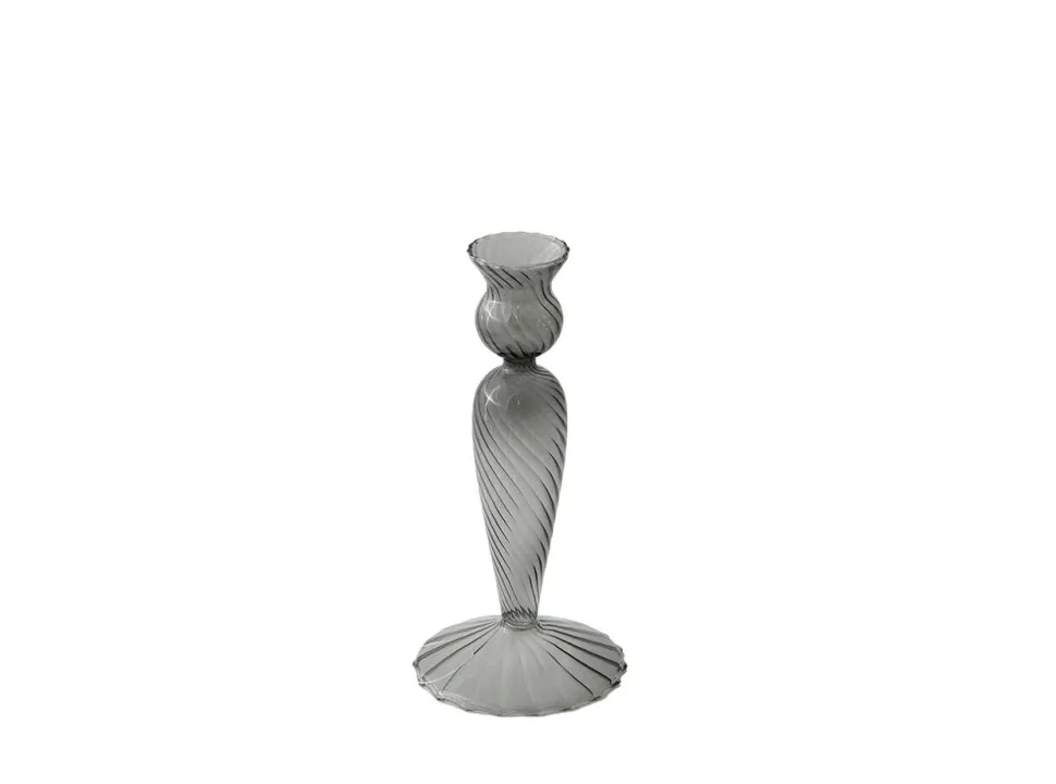 Este porta vela de vidrio presenta un diseño delicado y elegante, con una base en forma de espiral que captura la luz de la vela, creando un ambiente cálido y acogedor. Su material transparente y su acabado refinado lo convierten en un accesorio perfecto para cenas especiales, celebraciones o simplemente para darle un toque de estilo a tu hogar.