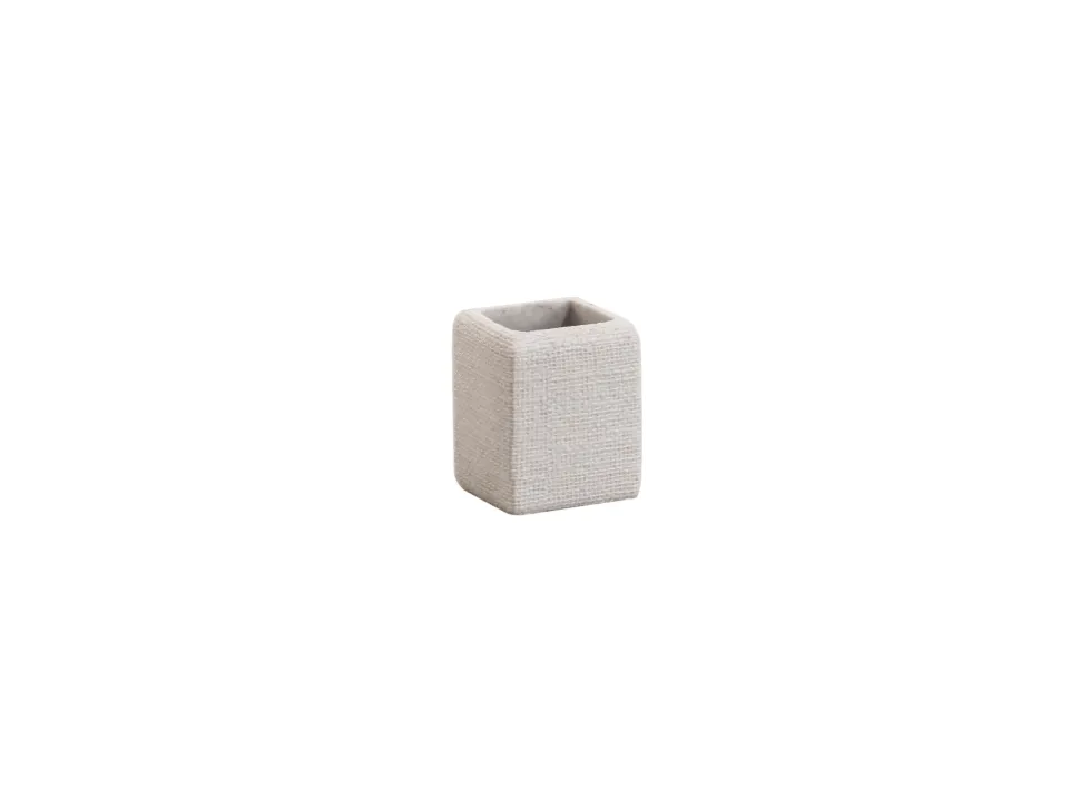 Este porta cepillos está fabricado en poliresina texturada, con un acabado que imita la suavidad del lino. Su diseño minimalista y su color neutro lo convierten en un complemento ideal para baños de estilo moderno, nórdico o natural.