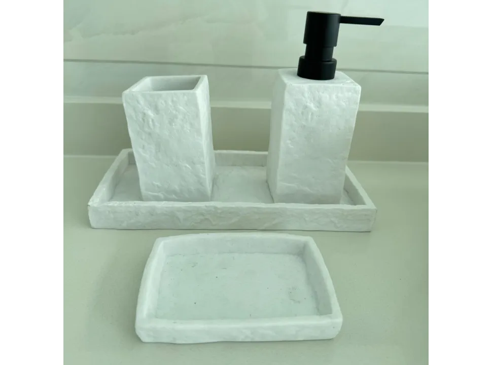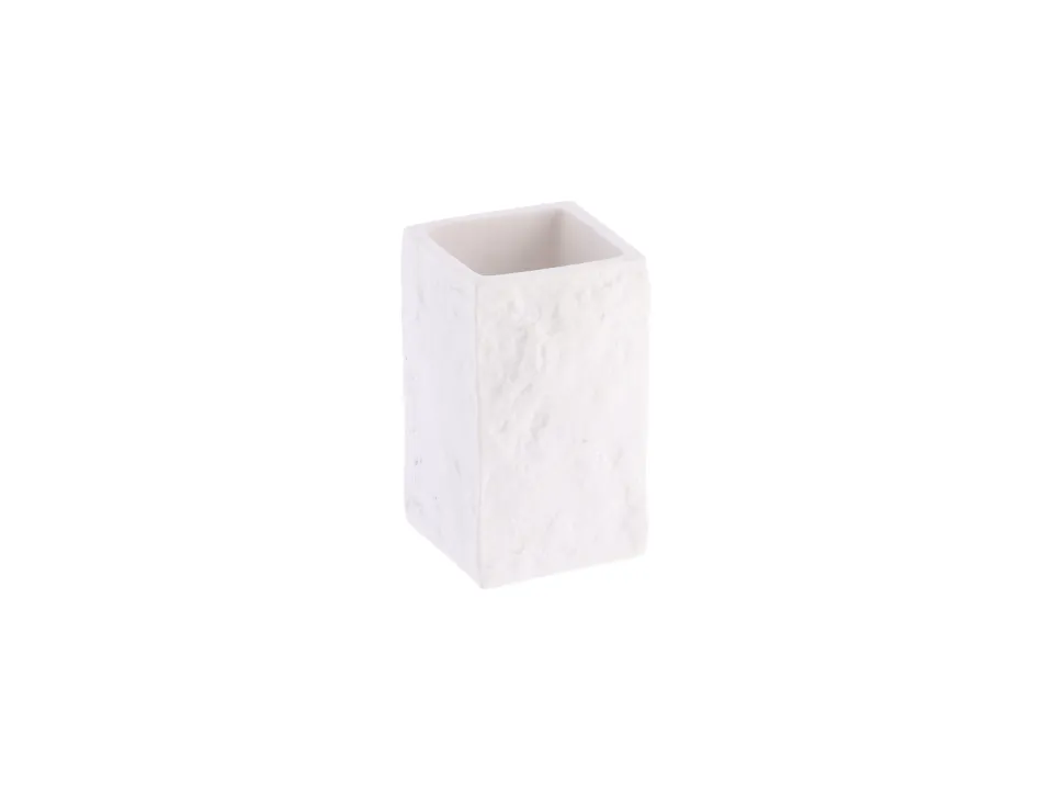 Este porta cepillo está fabricado en resina con acabado que imita la piedra, lo que lo hace resistente, liviano y visualmente atractivo. Su diseño minimalista y texturizado lo convierte en una pieza funcional y decorativa para baños de estilo contemporáneo, rústico o nórdico.