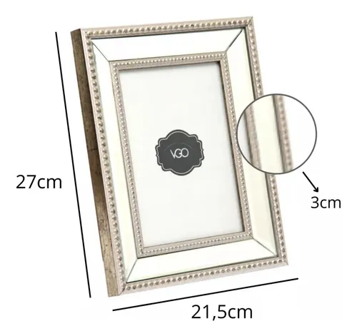 Este sofisticado portarretrato de 15x21 cm es el complemento perfecto para tu hogar u oficina. Con su diseño espejado y borde delicadamente adornado con perlas metálicas, aporta un aire de elegancia y modernidad a cualquier espacio. Ideal para mostrar tus recuerdos más especiales, este marco versátil encaja con diversos estilos decorativos, desde el clásico hasta el contemporáneo. Hecho con materiales de alta calidad, es una excelente opción para regalar o para darte un gusto personal. ¡Haz que cada momento brille con este hermoso portarretrato!