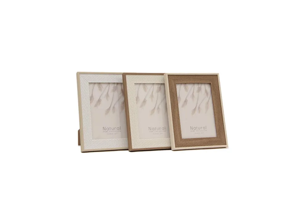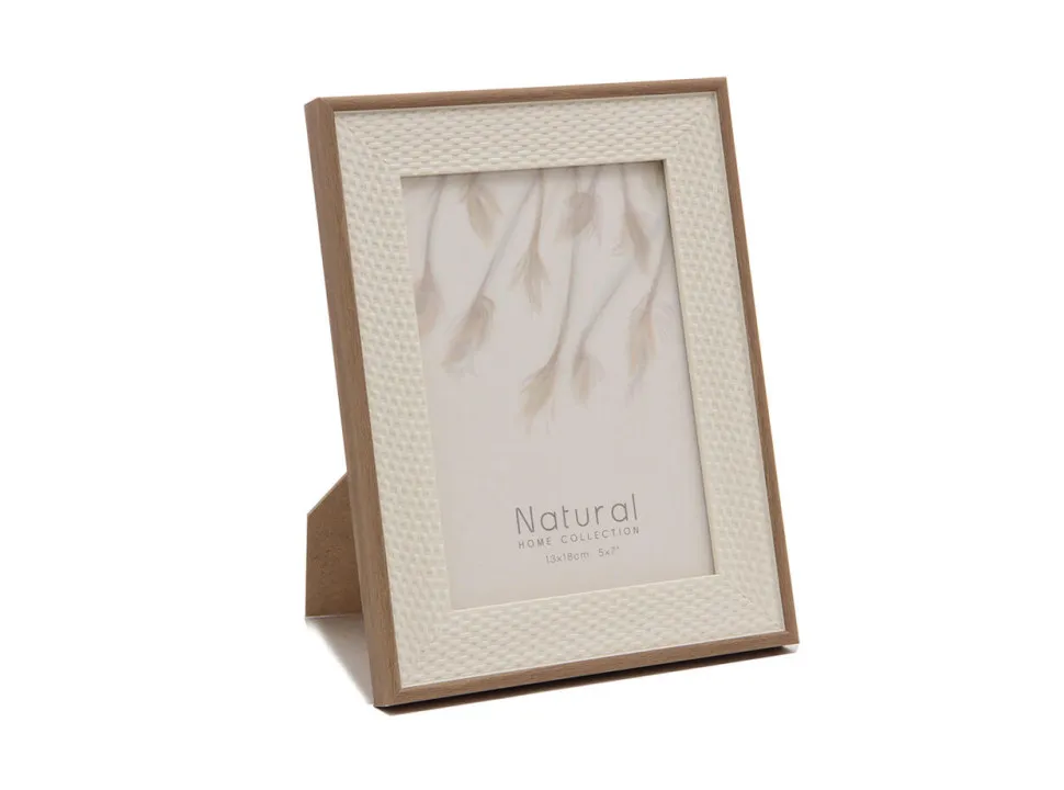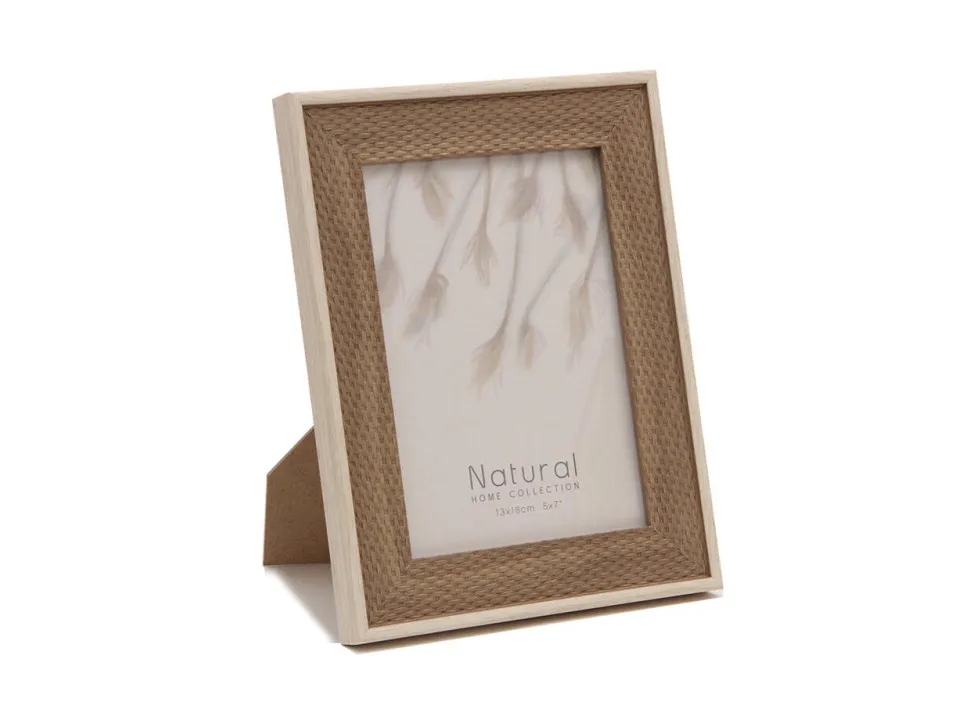 Este porta retrato de 15 x 21 cm con acabado simil ratan es perfecto para darle un toque cálido y natural a tu hogar. Disponible en blanco, madera clara y madera oscura, su diseño texturizado simula el ratan, lo que le da un aire orgánico y rústico que complementará cualquier estilo de decoración.