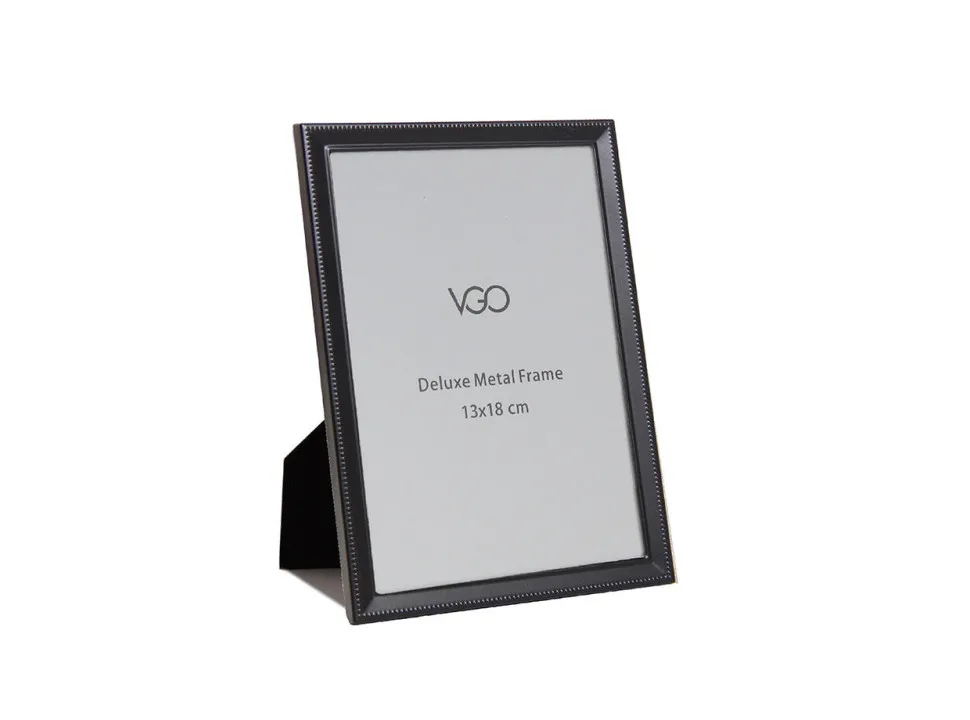 Resalta tus recuerdos con elegancia y estilo con este portarretrato metalizado negro de 15x21 cm.