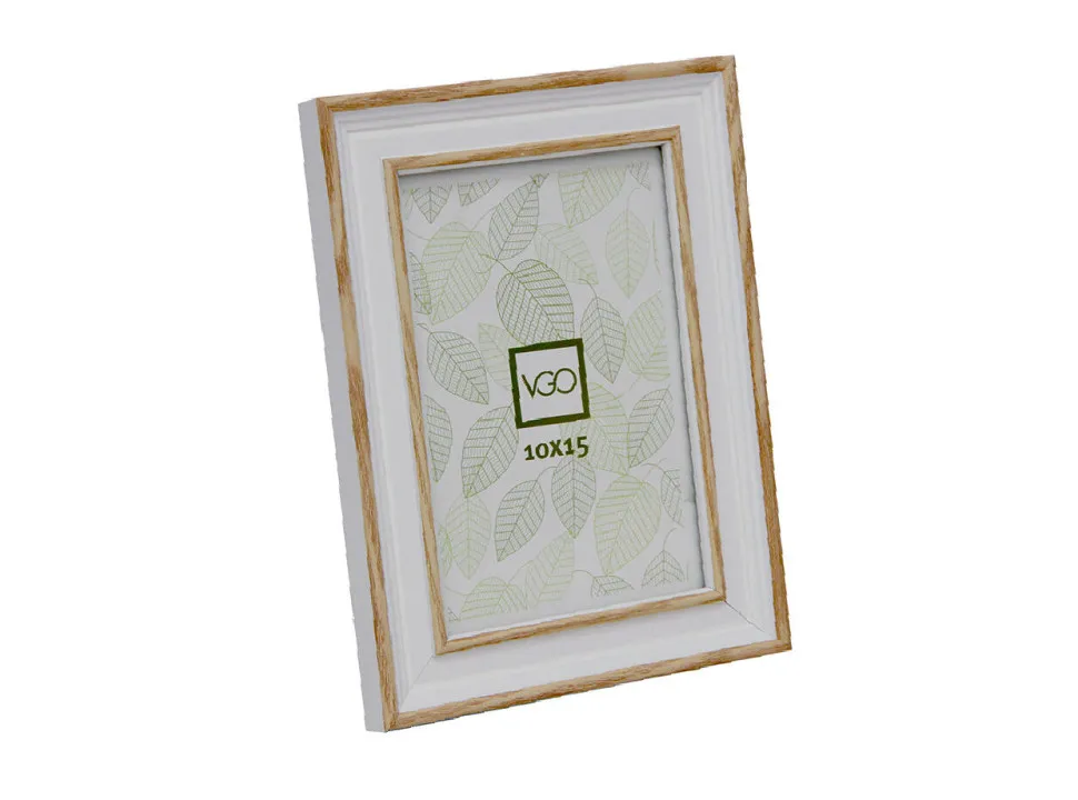 Este porta retrato de 10 x 15 cm con acabado simil madera ofrece un diseño limpio y moderno. Su marco blanco con detalles en madera clara le otorga un estilo natural y fresco, ideal para cualquier ambiente. Perfecto para mostrar tus fotos más queridas en tu hogar, oficina o como regalo.