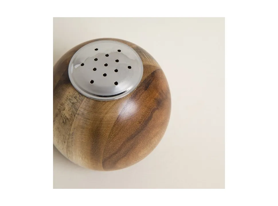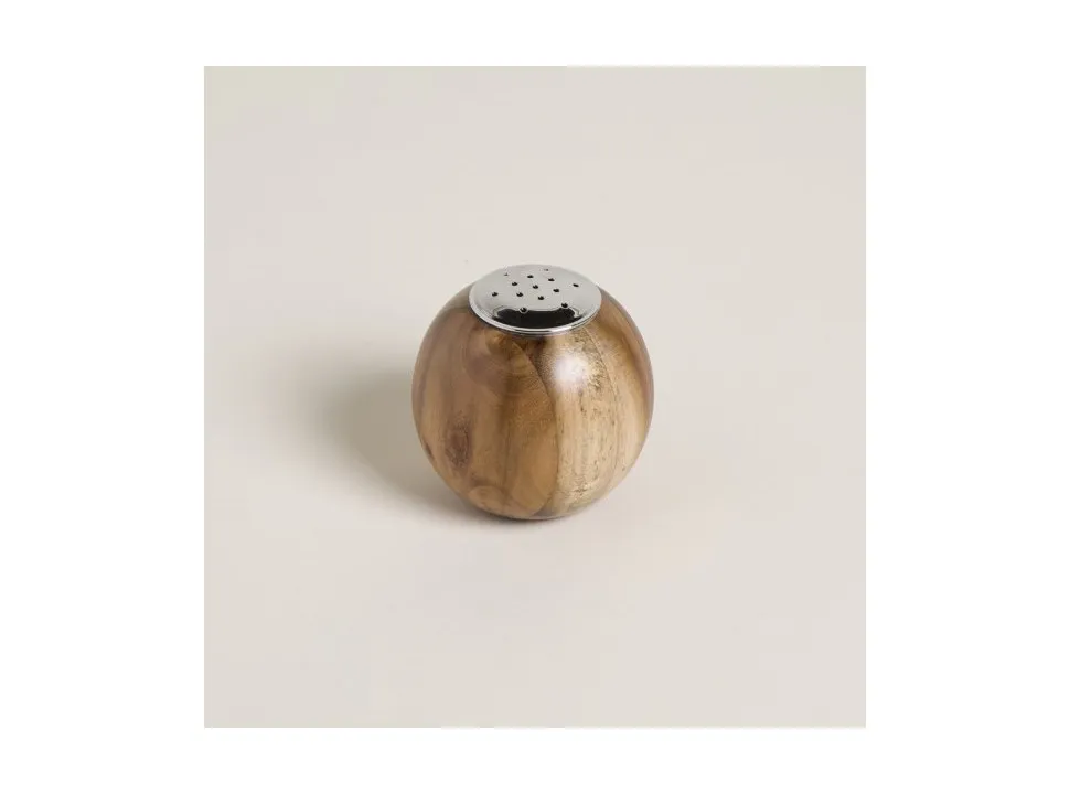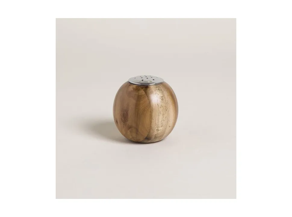Un toque natural y elegante para tu mesa con este salero redondo de madera de acacia, diseño compacto y funcionalidad garantizada.