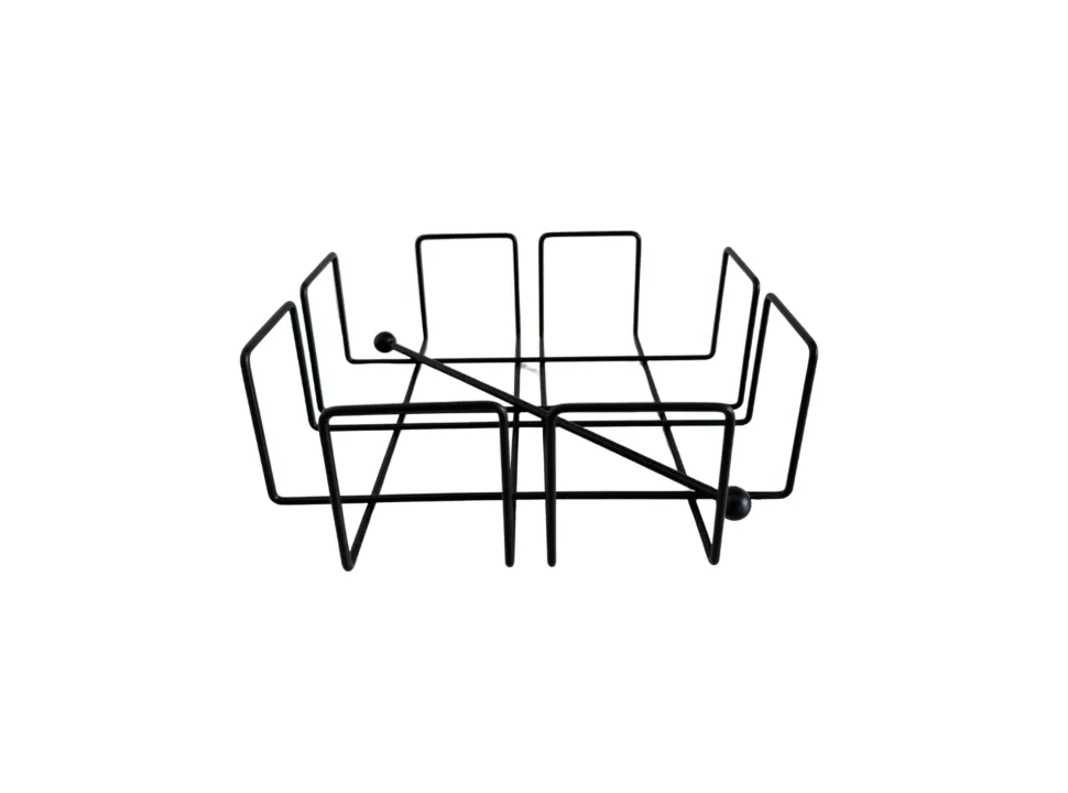 Un toque de estilo industrial para tu mesa. Este porta servilletas combina líneas geométricas con la resistencia del acero, ideal para uso diario o eventos especiales.