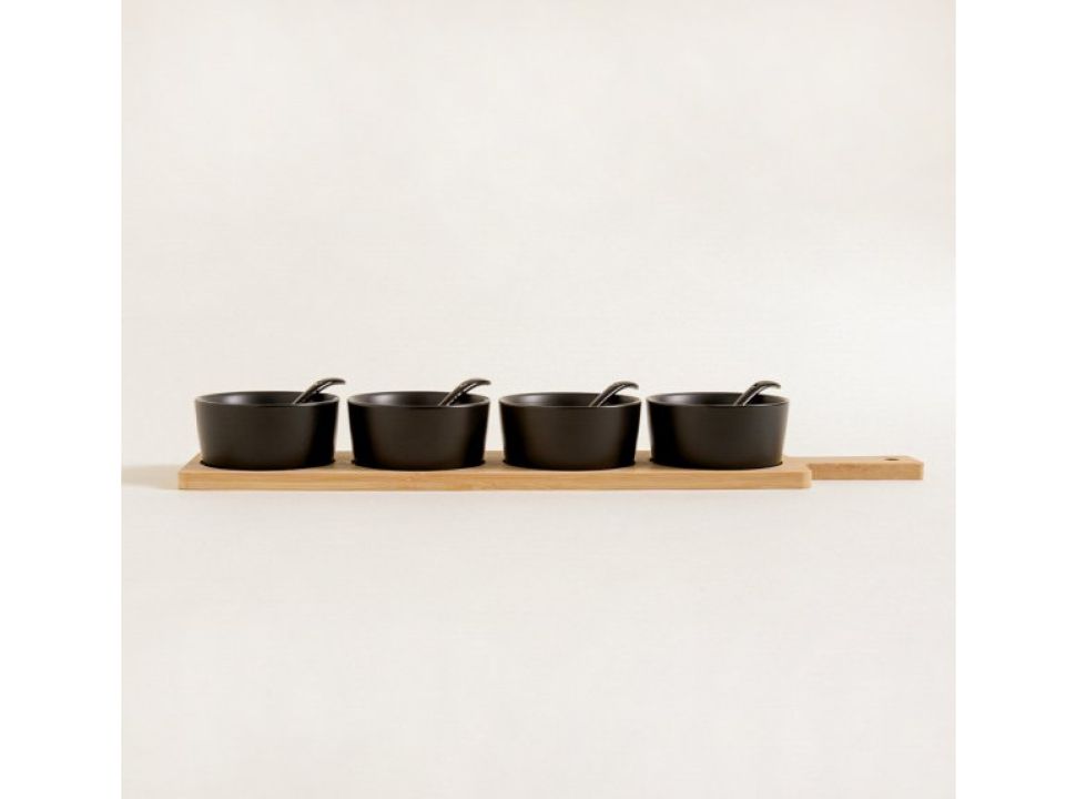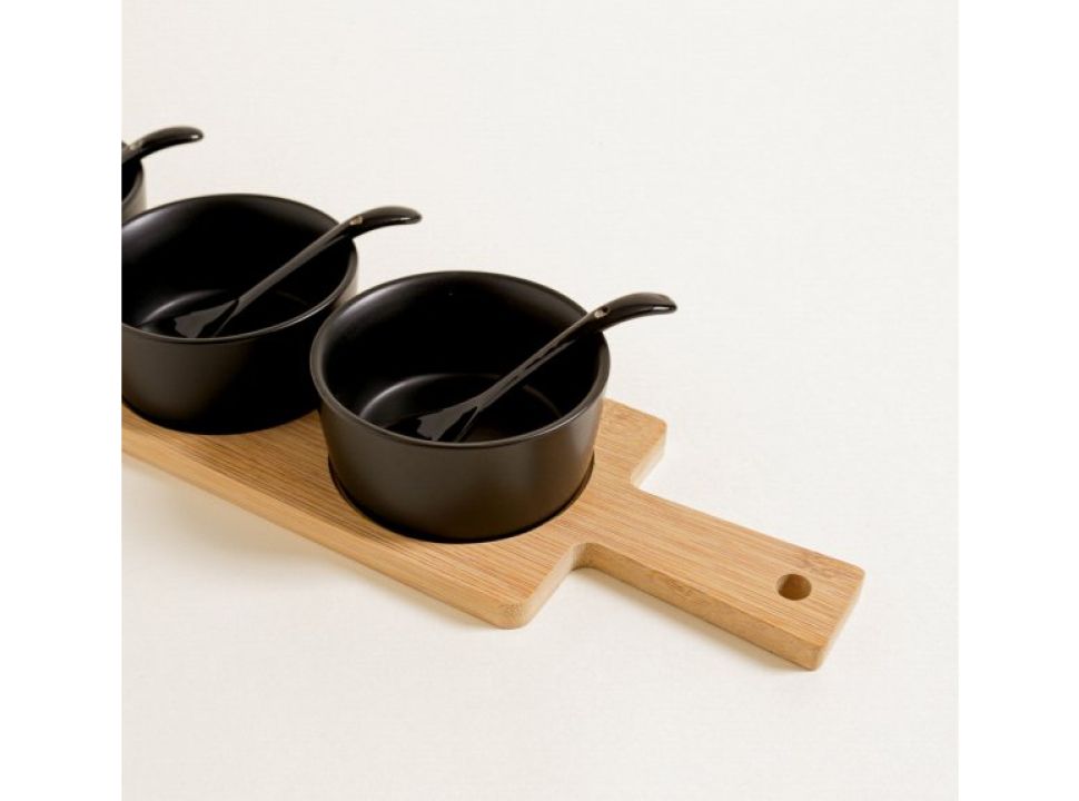 Base de Bamboo y Cucharas negras.