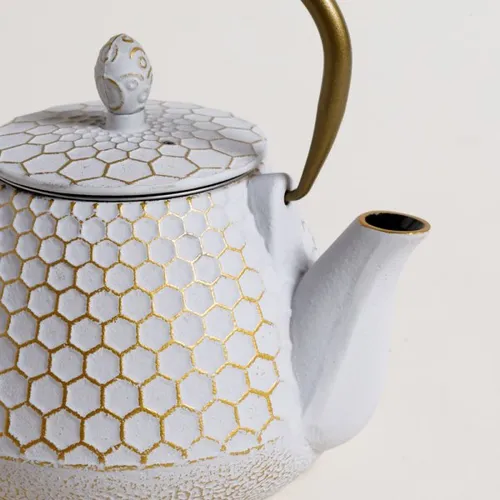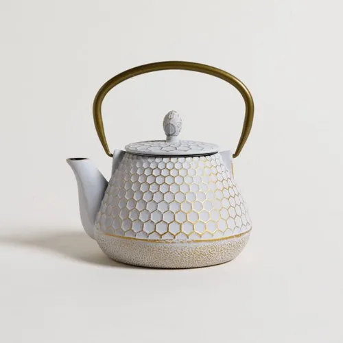 Inspirada en la estética japonesa, la Tetera Kioto Panal está elaborada en hierro fundido, un material que conserva el calor por más tiempo y permite una infusión más profunda. Su diseño en color off white con textura en relieve tipo panal combina funcionalidad y belleza, ideal para realzar tus momentos de té. Incluye un filtro de acero inoxidable removible para preparar té en hojas sueltas fácilmente.